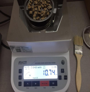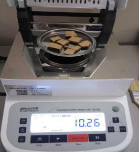 再次測(cè)試同樣撕取2克紙皮均勻平鋪在托盤中,5分鐘左右檢測(cè)結(jié)束結(jié)果顯示10.74%。