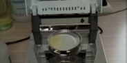 二、儀器本身有個(gè)自動(dòng)降溫過(guò)程,為求得數據的準確性,故在進(jìn)行第二次測量的時(shí)候先等待幾分鐘,使儀器顯示溫度為40度以下時(shí)再進(jìn)行第二次測量,這次我們加大膠水樣品量為7.025克,將膠水均勻滴于鋁箔盤(pán)上,溫度照樣設定在120℃,按“START”鍵開(kāi)始進(jìn)行測試,由于這次的膠水量比較多,所以?xún)x器此次用了17分鐘43秒才測試結束,測試結果數據顯示31.17%(含水率),按“單位鍵”切換其顯示數據,則屏幕顯示其固含量為68.83%。